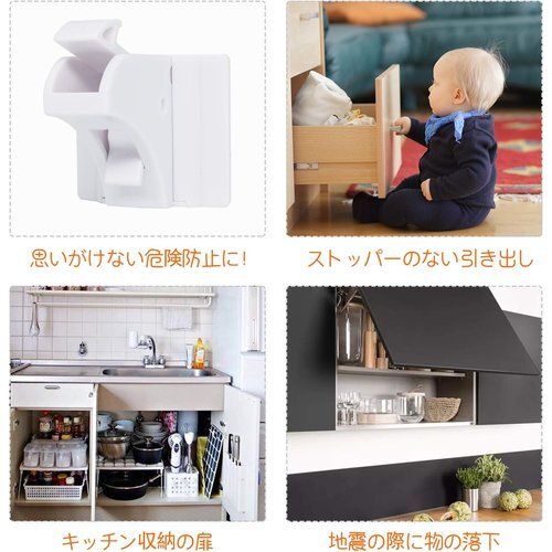 新品 日本語説明書付き 白 地震対策 引き出し・タンス・食器棚など対応 トッパー 12 チャイルドロック ベビーガード 108