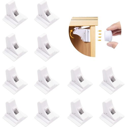 日本語説明書付き ベビーガード チャイルドロック 12ロック+2マグネット式 キー+2固定器  安全磁気 キャビネットロック 赤ちゃん/子供/ペットいたずら防止 引き出しロック 磁石 開閉簡単 指はさみ防止 子供安全ロック ストッパー 引き出し・タンス・食器棚など対応 地震対策 白  108