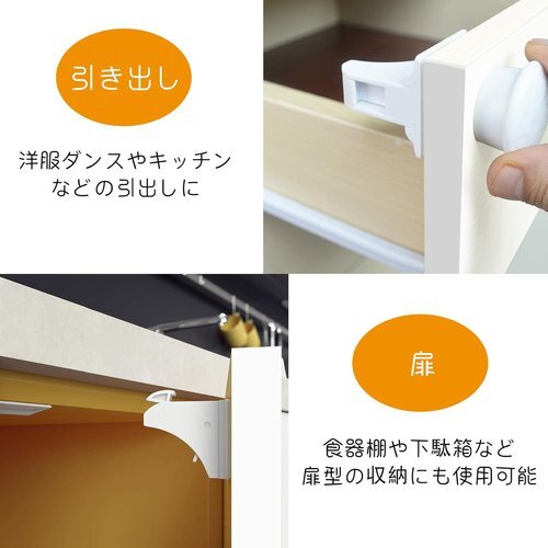 【磁気キーがないと開かない安心設計】従来の引き出しロックだと、赤ちゃんはママの真似をしてすぐに解除できるようになってしまう恐れがあります。このマグネット式ロックなら、キがないと開けられない構造で、より安全安心!※子供の手が届かないところにキーを保管してください。