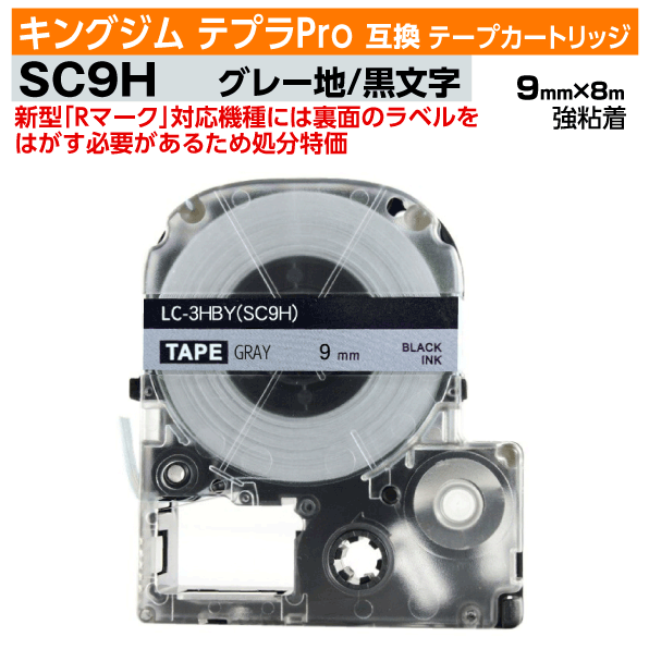 【数量限定セール】キングジム テプラPro用 互換 テープカートリッジ 旧型 SC9H〔パステルカラー〕9mm幅 グレー地 黒文字 ブラック