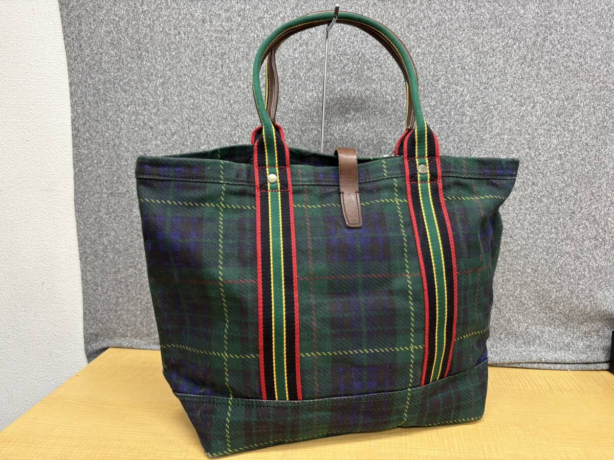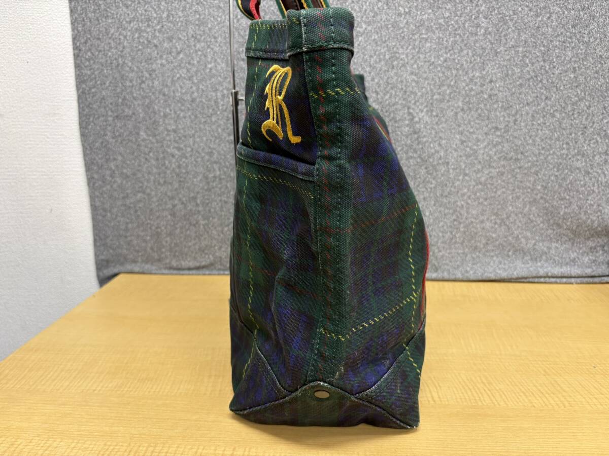 デッドストック★ラルフローレンラグビーRALPH LAUREN RUGBYレザーハンドルチェックキャンバストートバッグ★A1501061