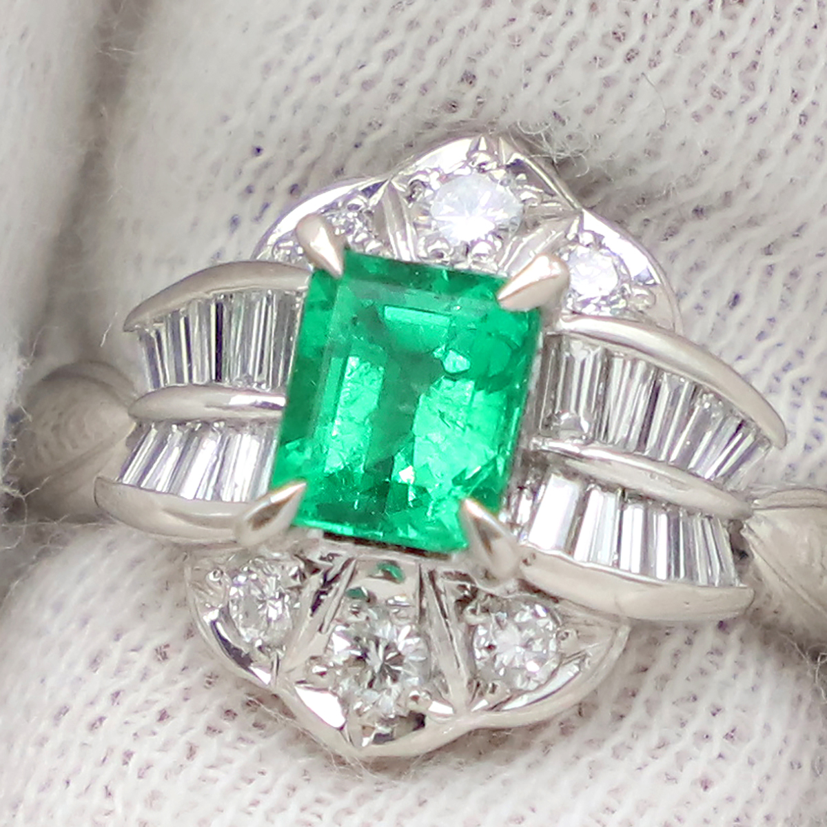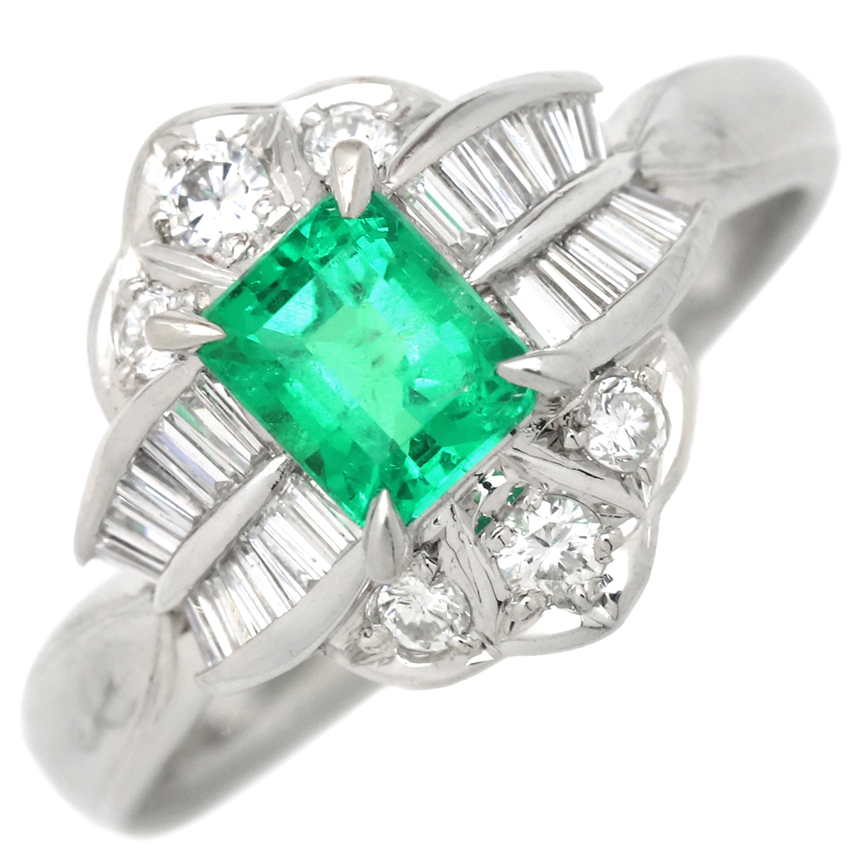 ノンブランド NON BRAND リング 指輪 Pt900 エメラルド ダイヤモンド プラチナシルバーグリーン 緑 - 13.5号 レディース定番 人気 美品 中古 | |