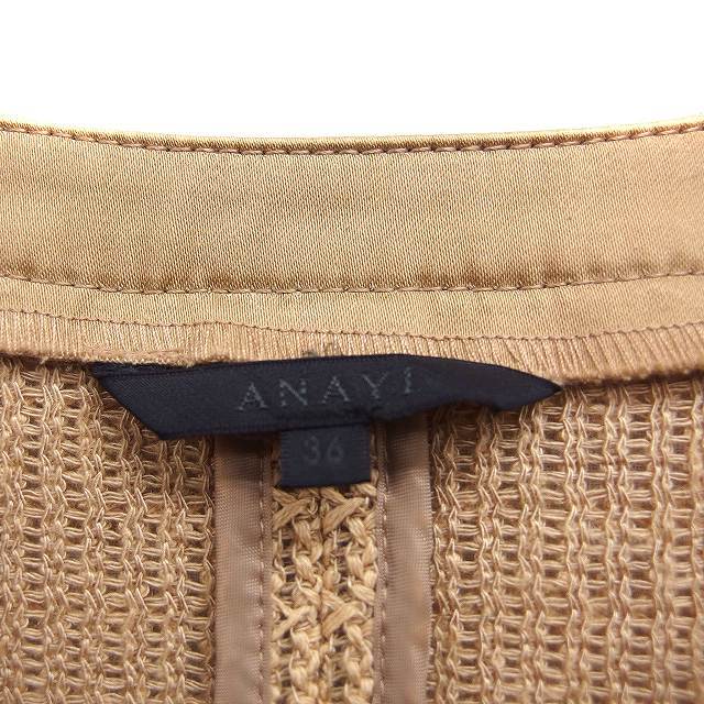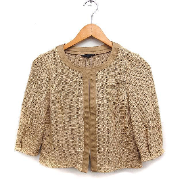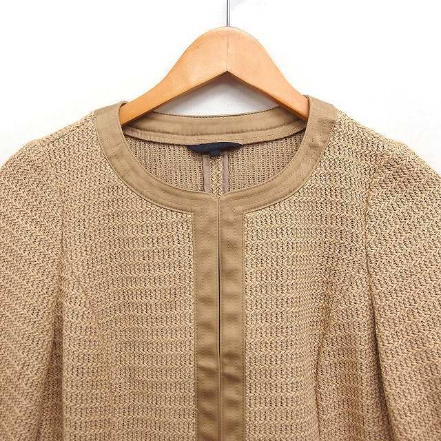アナイ ANAYI ノーカラー ジャケット ハーフスリーブ リネン混 36 ベージュ /FT46 レディース