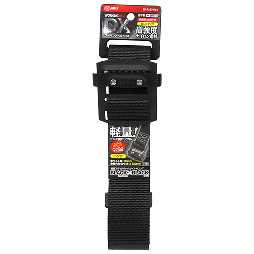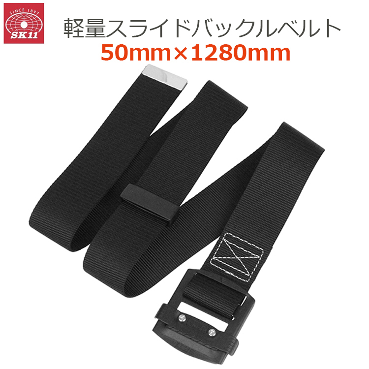 SK11 軽量スライドバックルベルト 50mm×1280mm ブラック 作業用ベルト SB-AS50-BB-L