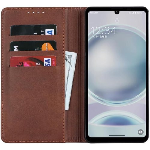 aquos sense8 sh-54d ケース 手帳型 カードスロット、キックスタンド レザー ダークブラウン 2637