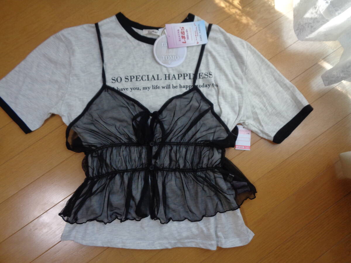 しまむら☆インフルエンサーコラボ☆トモ☆tomo☆ビスチェ☆トップス☆プルオーバー☆Tシャツ☆新品☆配色☆黒☆ロゴ☆淡色コーデ