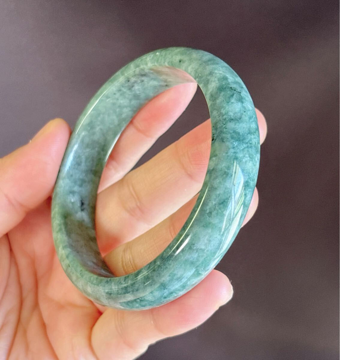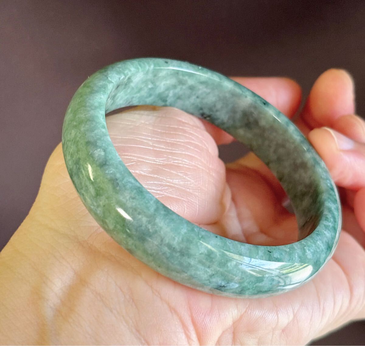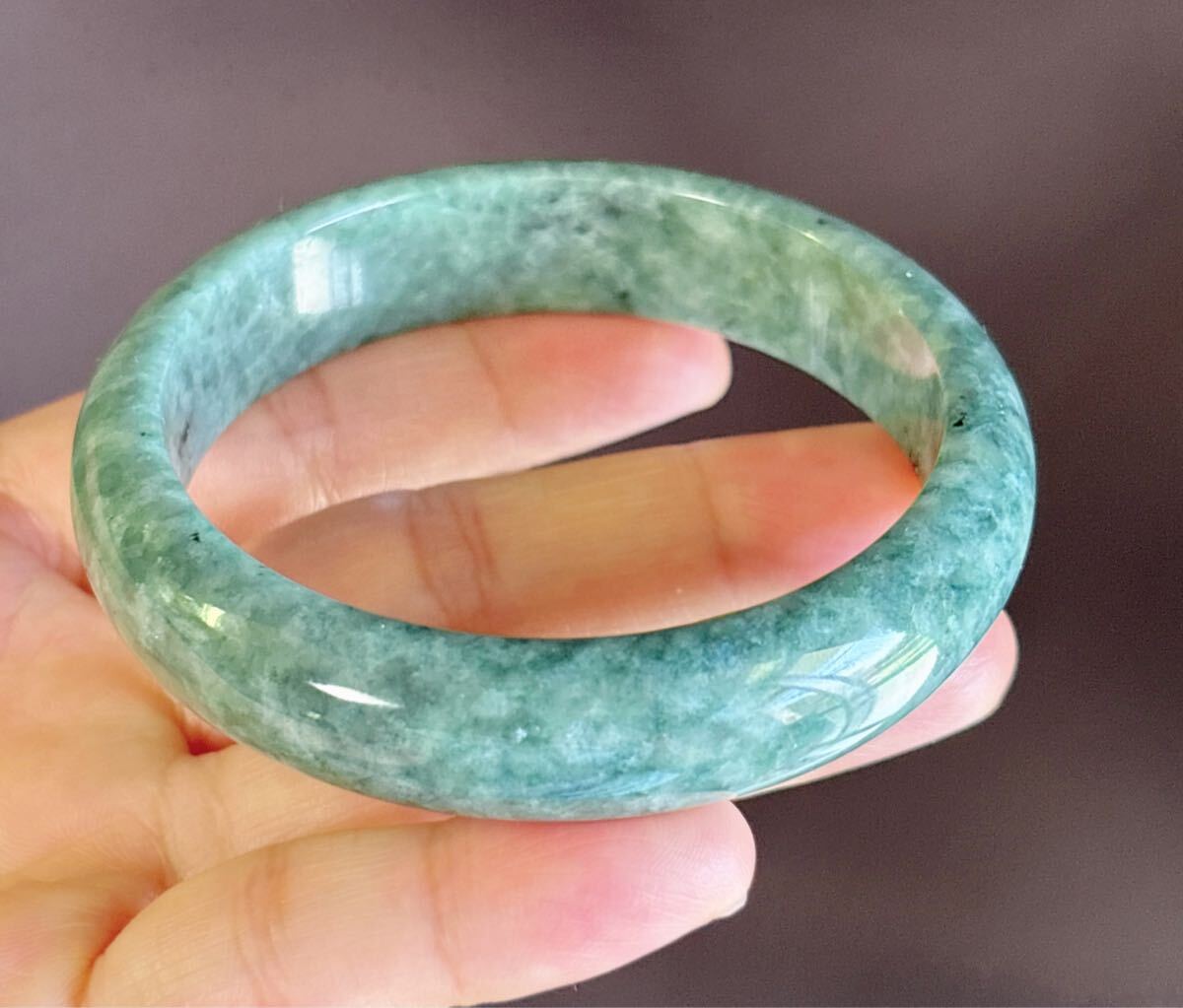天然石ミャンマー糯種本翡翠 (A)バングルの内径約:56mm*幅14mm*厚さ7mm;