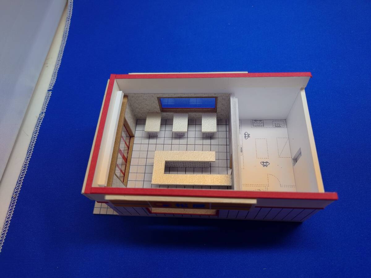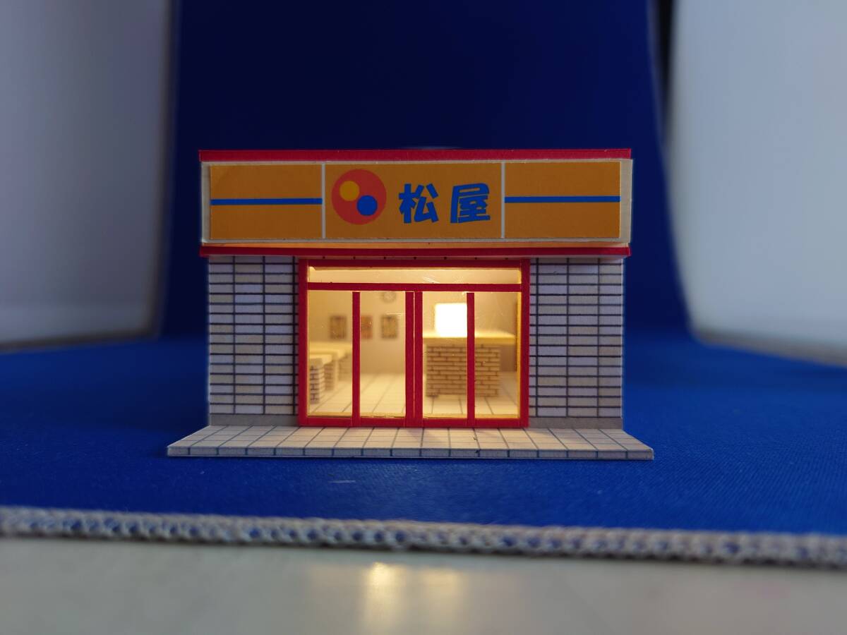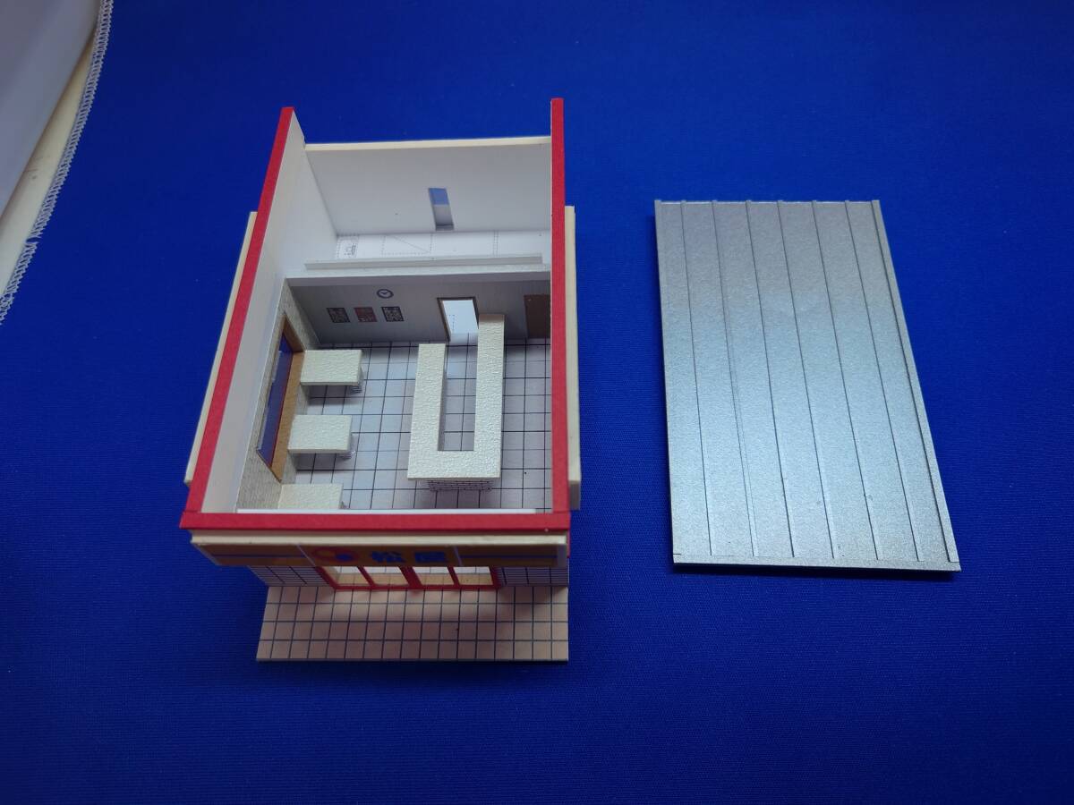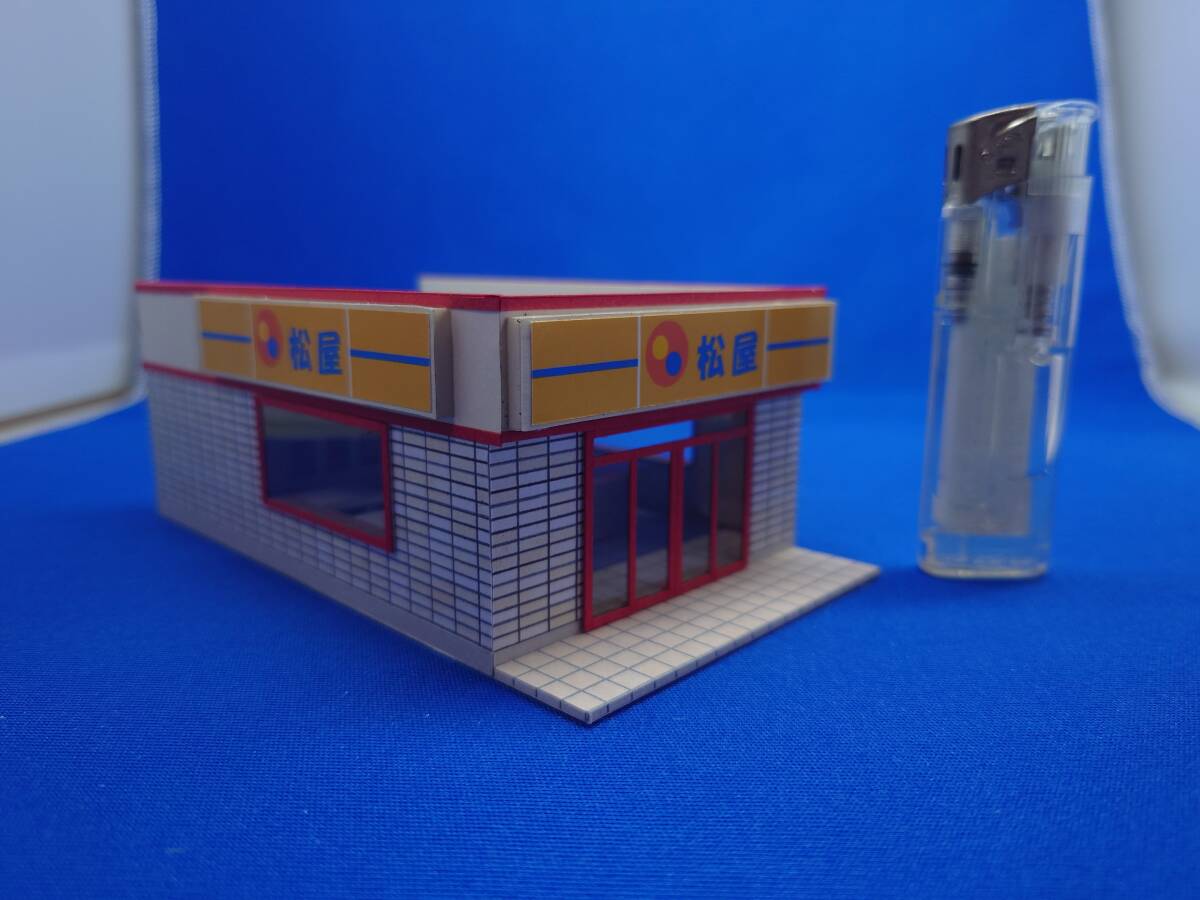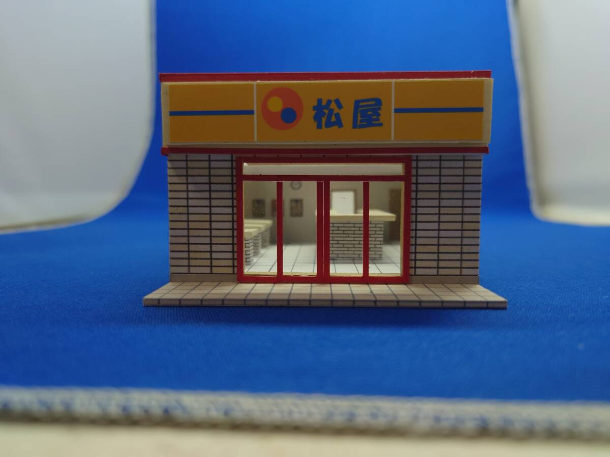 ![]() 商品説明☆オリジナルの建築模型です。 ☆材質は、スチレンボードに模造紙を貼り付けて制作しています。 ☆寸法は、HOゲージにも対応した1/87で、模型の大きさは約横幅:8.0㎝、奥行:13.0㎝、高さ:5.0㎝ ☆屋根が分解できます。(写真参照) ☆HOゲージ以外にも、インテリアの置物、ディスプレイ等におすすめです。 ☆牛丼屋店舗風の外観に仕上ました ☆写真のように分解が可能なのでLED照明の組み込みも簡単にできます。(写真はイメージですので照明はついていません) |