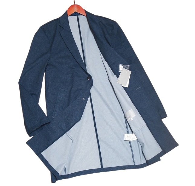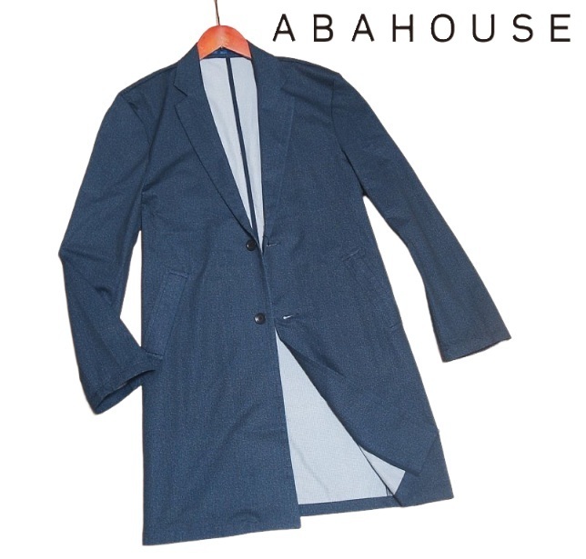 新品! ABAHOUSE アバハウス メッシュ 柄プリント チェスターコート ブルー (M) ☆ Air Hole Stretch メンズ 軽量 スプリングコート 青 ★
