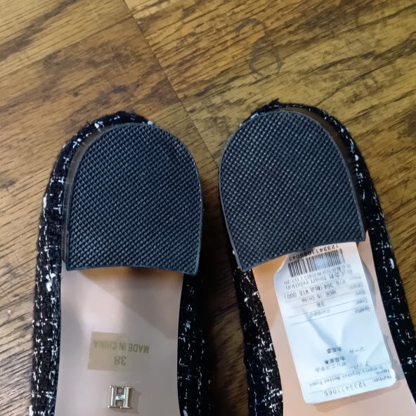 かかとの減りもありませんが、裏側が少し汚れラベルが貼られています。