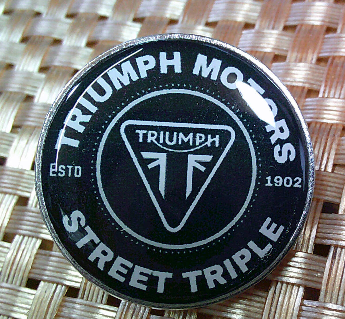 《黒円型TP二輪》レトロ■新品『TRIUMPH トライアンフ』ユニオンジャック 金属ピンバッジ■イギリス ■単車 バイク オートバイ 二輪車