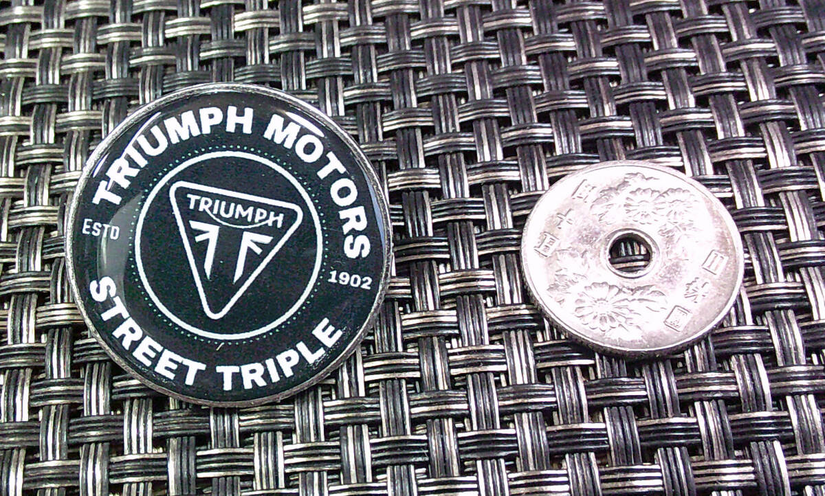 《黒円型TP二輪》■レトロ 大人デザイン■新品『TRIUMPH トライアンフ』ユニオンジャック 金属ピンバッジ バッチ■イギリス