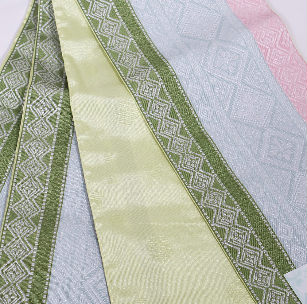 | 色 | 表側:緑・ライトグレー・ピンク地花菱文 裏側:黄地水玉 |