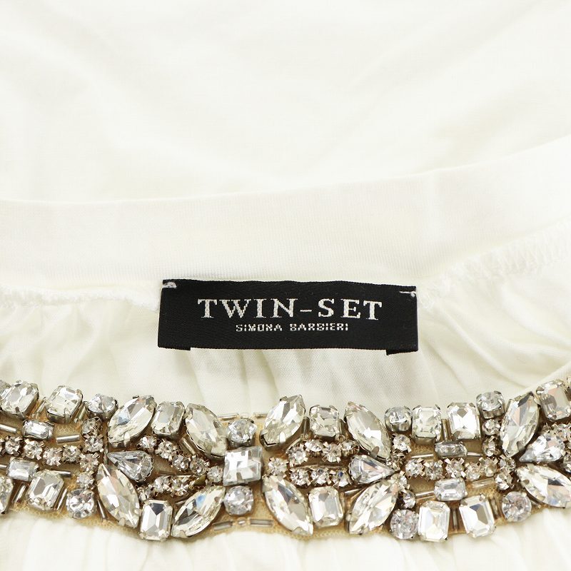 ツインセット TWIN SET カットソー 半袖 ビジュー レース コットン XS 白 ホワイト PS623C /AN43 ■GY41 レディース