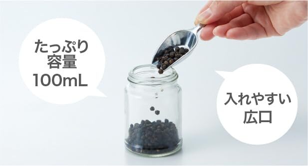 大容量の調味料ボトル! ボトルは100ml の大容量で、詰め替えやすい広口タイプ。匂いや色が移りにくいガラス製です。 別売りのボトルと合わせて使うと、他の調味料にも簡単に取り換えでき、保存にも便利です。