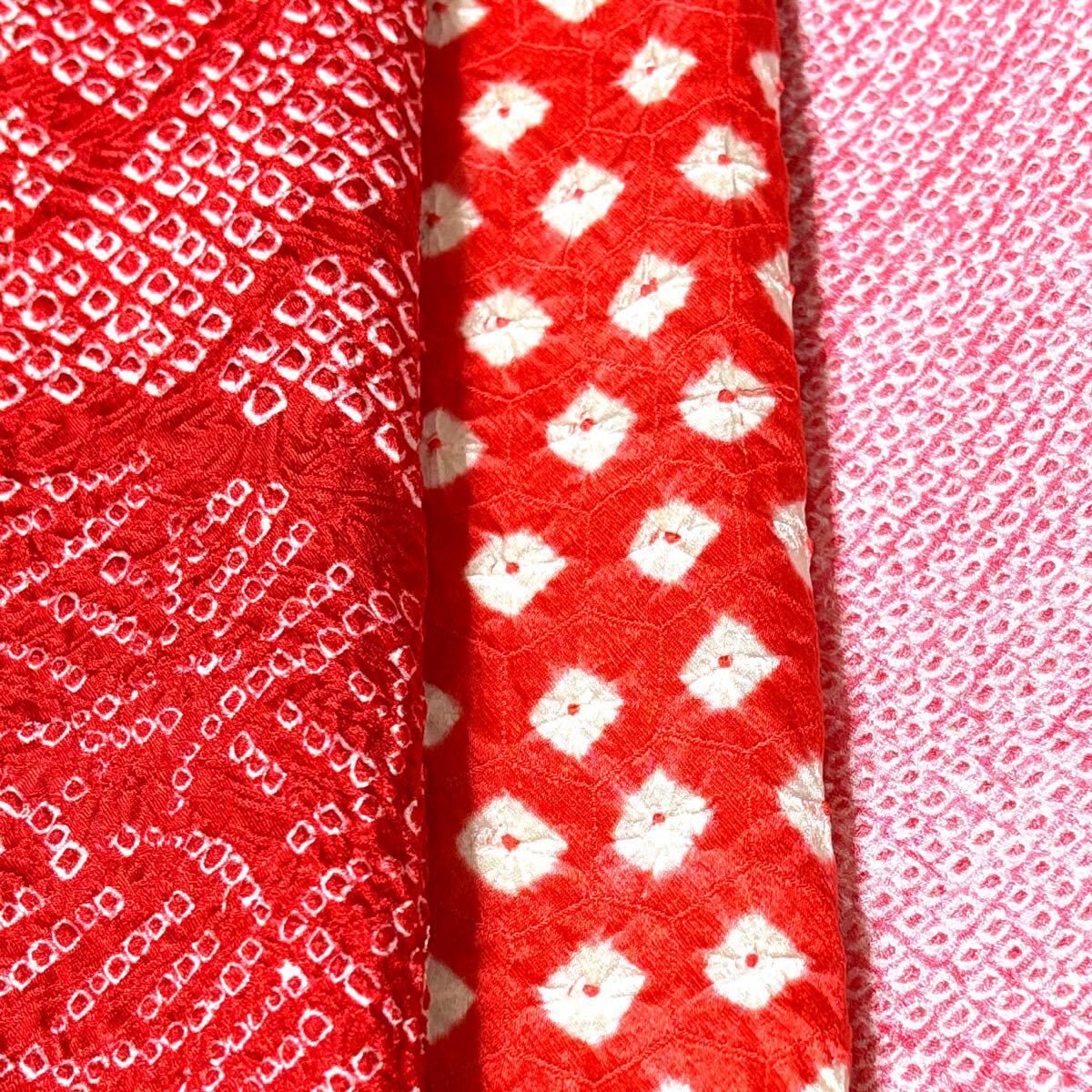 綺麗な正絹の絞り染め着物はぎれをセットにしました。