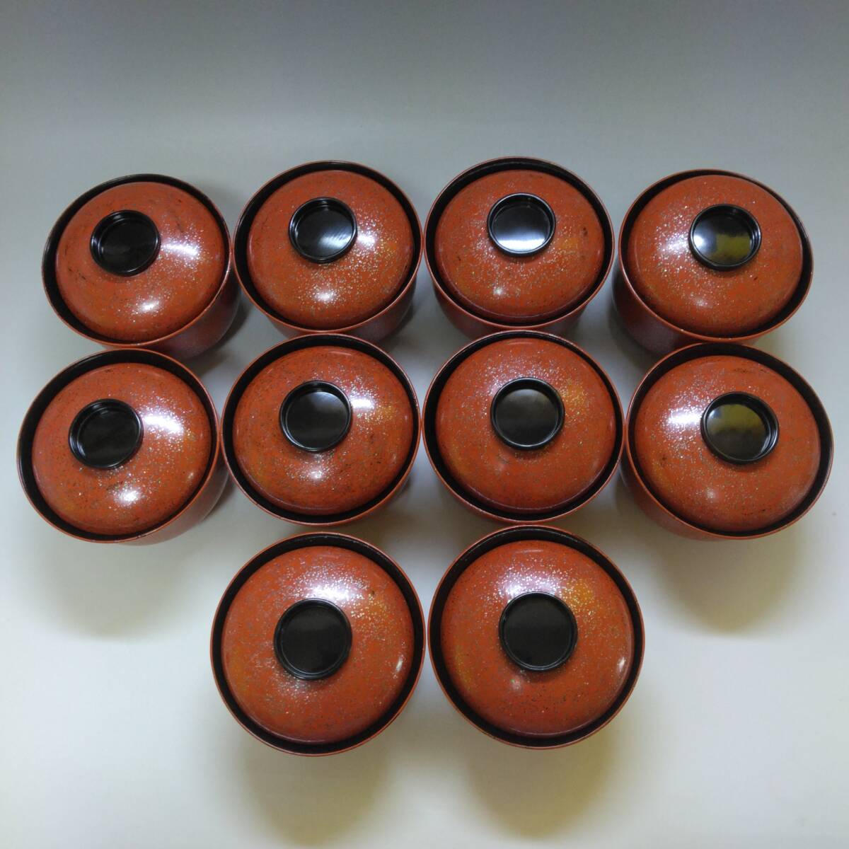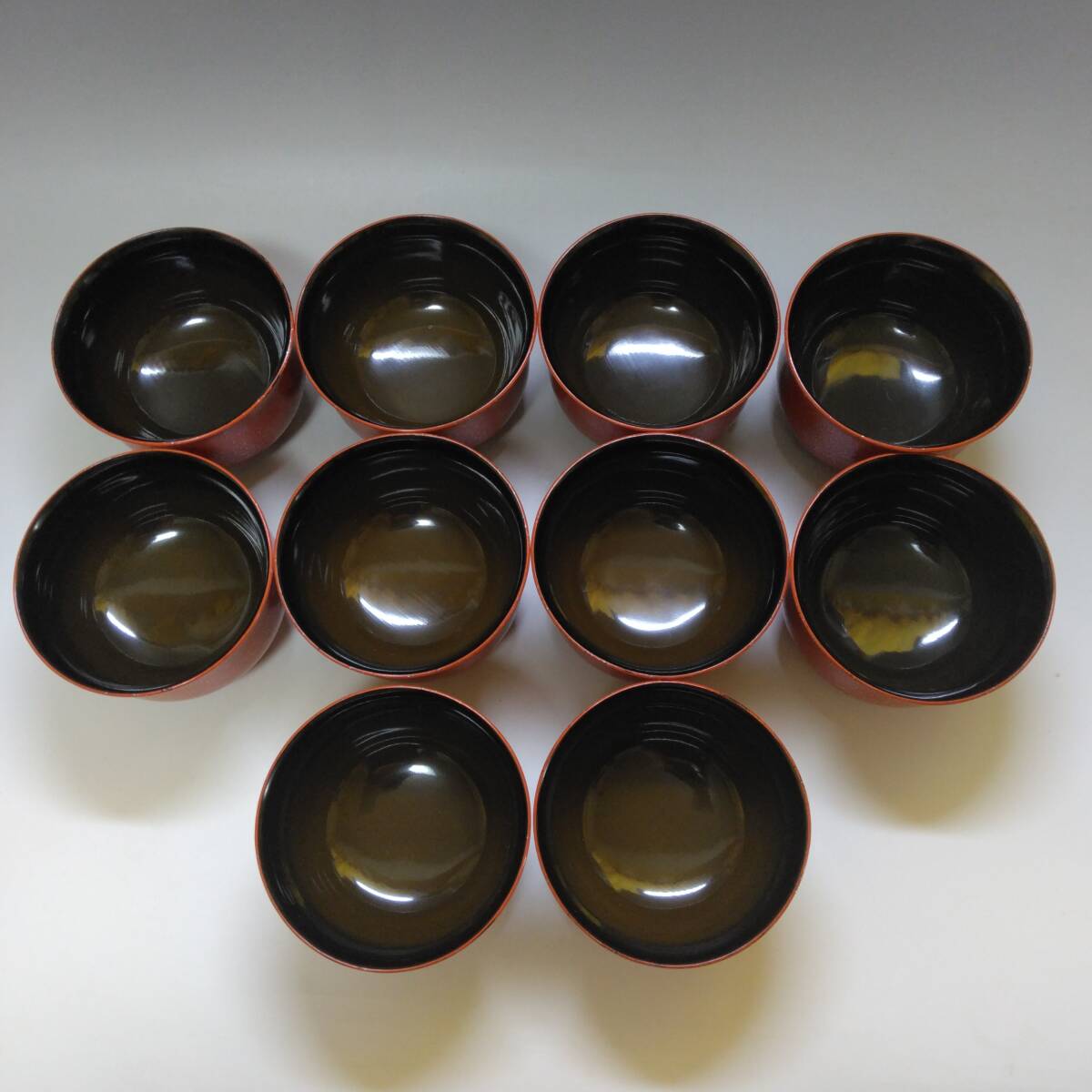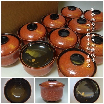 【T-440】能登輪島塗 赤色松葉模様 吸物椀10客組 共箱付 茶懐石 茶道具 時代物 | |||