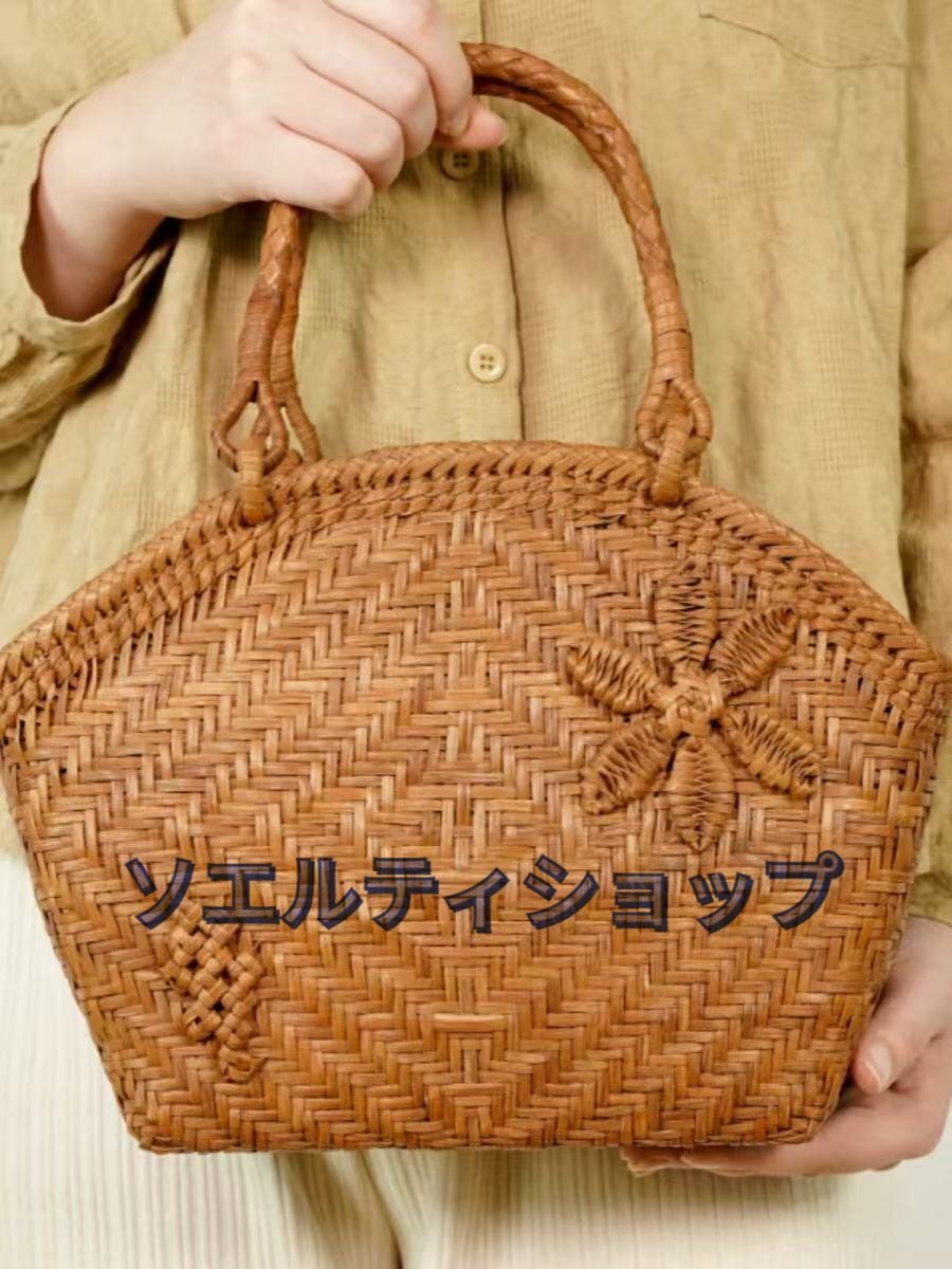 美品☆職人手作り良品 山葡萄かごバッグ 手編み山葡萄籠バッグ バスケット籐かご  高級ハンドバック