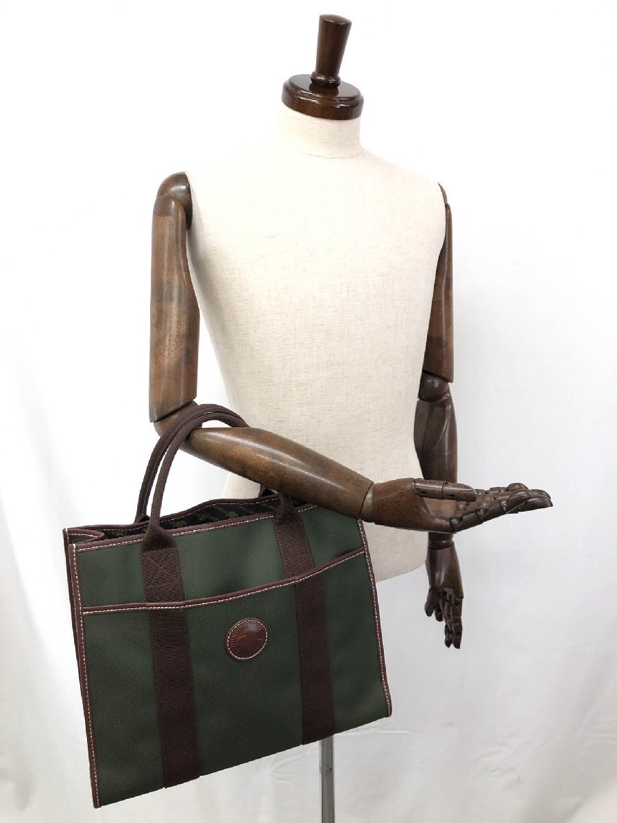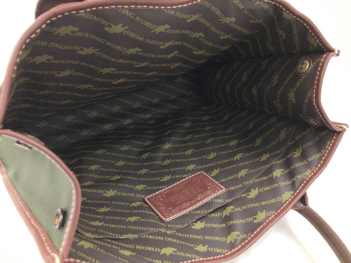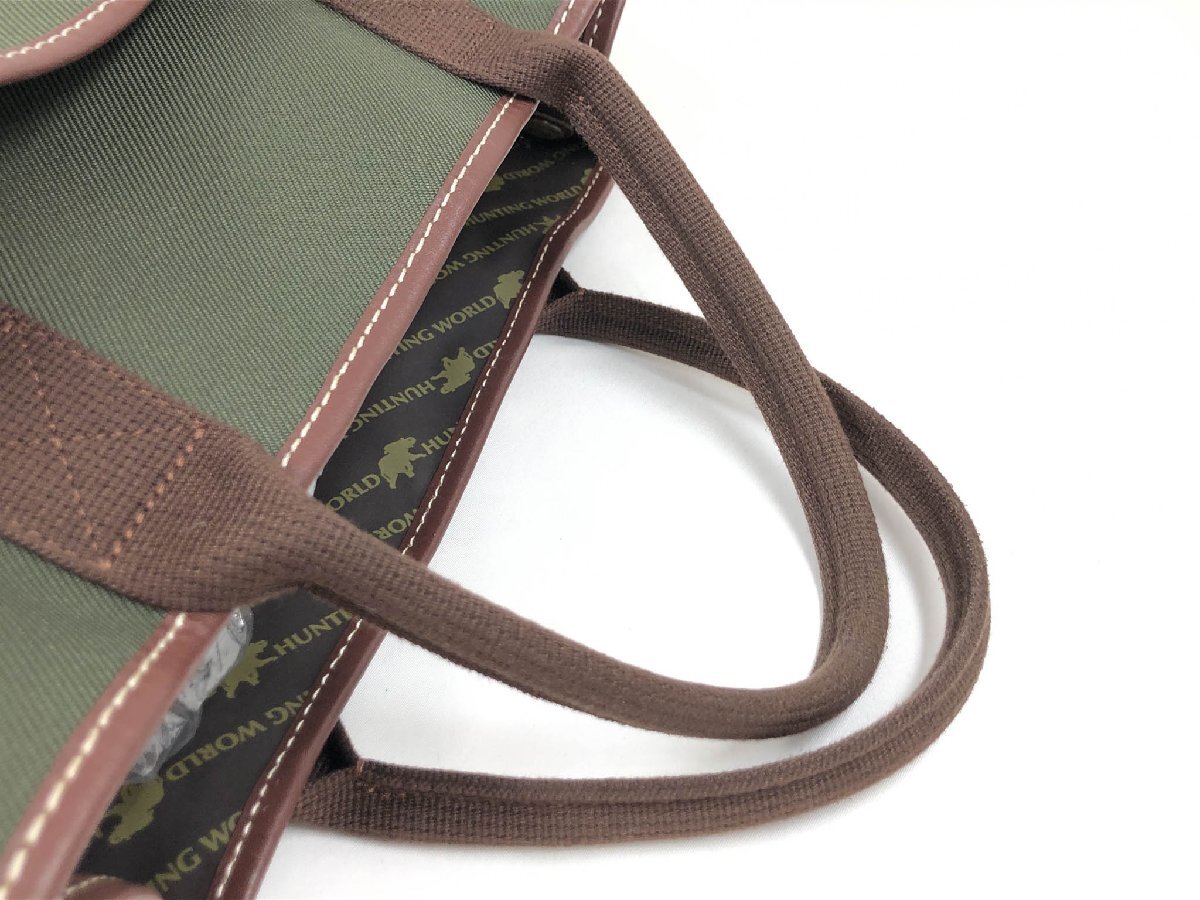 美品 【ハンティングワールド Hunting World】 512002 サファリトゥデイ トートバッグ(メンズ)ダークグリーン系×ダークブラウン ◯5MG3063