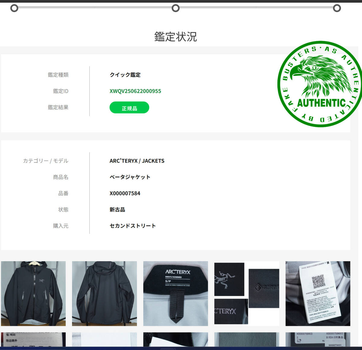 商品概要 ・ モデル:Beta Jacket(2023FW) ・ 品番:X000007584(※正規品) ・ サイズ:S(メンズ) ・ カラー:ブラック(Black) ・ 素材:GORE-TEX(ePTFEメンブレン)+30Dナイロン表地 ・ ロゴ仕様:バードロゴ(始祖鳥)刺繍 左胸部分/ブランドロゴ フード部分 特徴 ・ロゴデザイン(バードロゴのみ) と従来型GORE-TEX(ePTFE)の組み合わせは2023年FWモデルのみです、この機会にいかがでしょうか? ・軽量&防水仕様 表地30デニールナイロン使用で軽快な着心地 タウンユース ハイキングまで幅広く対応 状態 ・某リサイクルショップのネット通販でタグ付きの状態の本品を購入しました ・状態 :未使用に近い 1回のみ着用し外出しています ・フェイクバスターズのクイック鑑定で正規品の鑑定結果が出ています(画像参照)、正規品を保証するものではありませんが入札の参考にしていただけるとありがたいです ・喫煙者なし ・ペットなし ・タグ・付属品 あり |