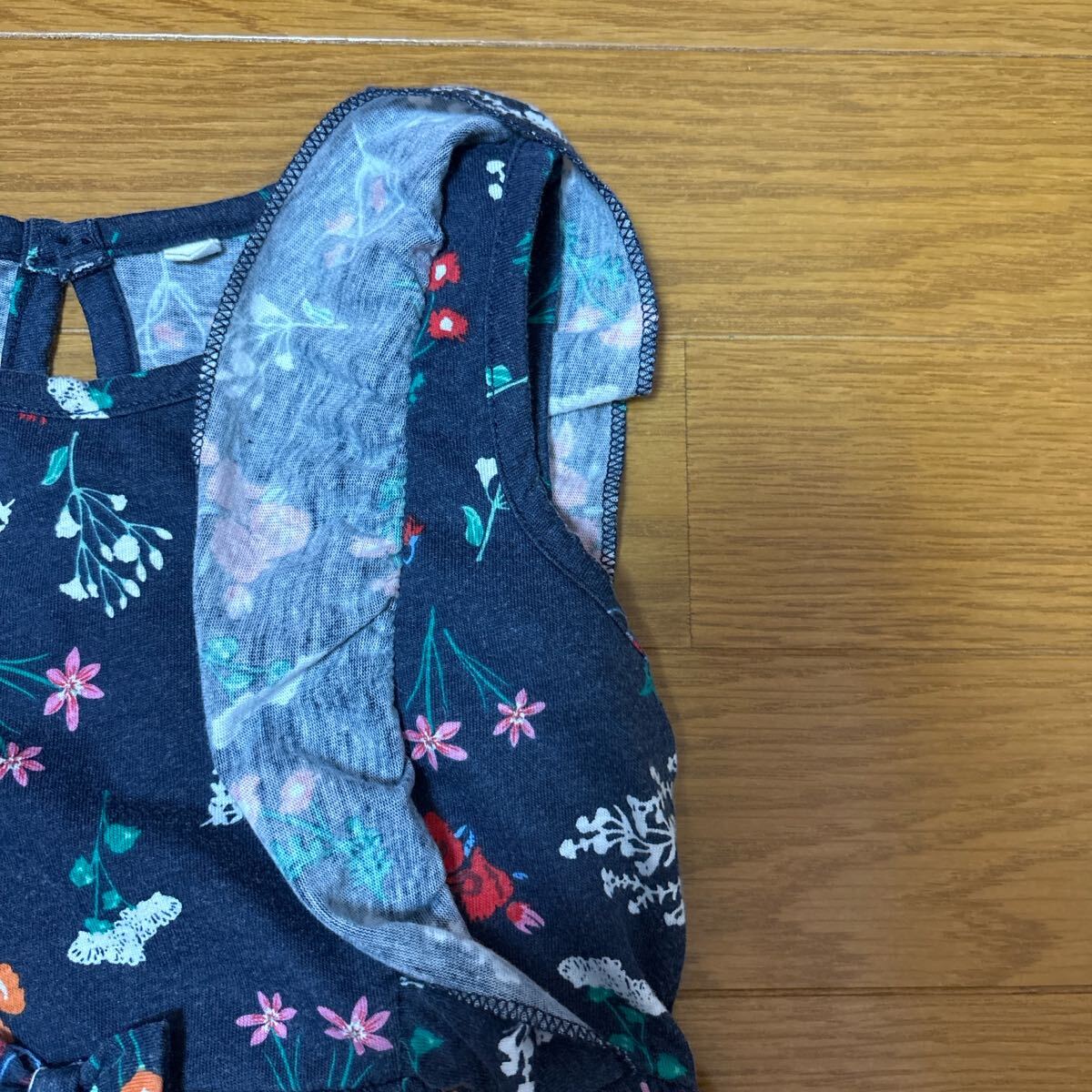 ●腕ぐり、ノースリーブに同生地フリルの二重になっています。