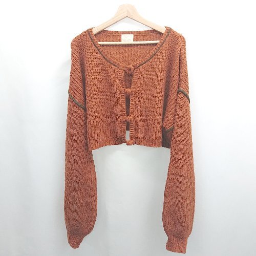 ◇ ⊇ spoon store スプーンストア ローゲージ ハイネック ニット カーディガン サイズF テラコッタ系 レディース E
