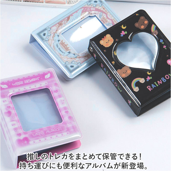 | 商品説明 | ・・推しのトレカをまとめて保管できる!持ち運びにも便利なアルバムが新登場。 ・【お気に入りの1枚を表紙に】 ・表紙部分はスクエアやラウンド型にくり抜かれた、クリア窓仕様。とっておきの1枚をアピール♪ ・【いつでもどこでも推しと一緒】 ・バッグにそっと忍ばせておける、コンパクトサイズ。推しと一緒なら、お出かけがもっと楽しくなること間違いなし◎ ・【収納力のあるアイテム】 ・見開きで2枚、合計40枚!見た目以上にたっぷり収納OK。サイドからスッと入るので、入れ替えもスムーズ。 ・【使い方は自分次第】 ・ゲームなどのカードを収納したり、自由にコレクションできちゃう! ・【お気に入りをチョイス】 ・ポップでキュートなデザインをラインナップ。上部の穴にお手持ちのチャームなどを取り付け可能。 |