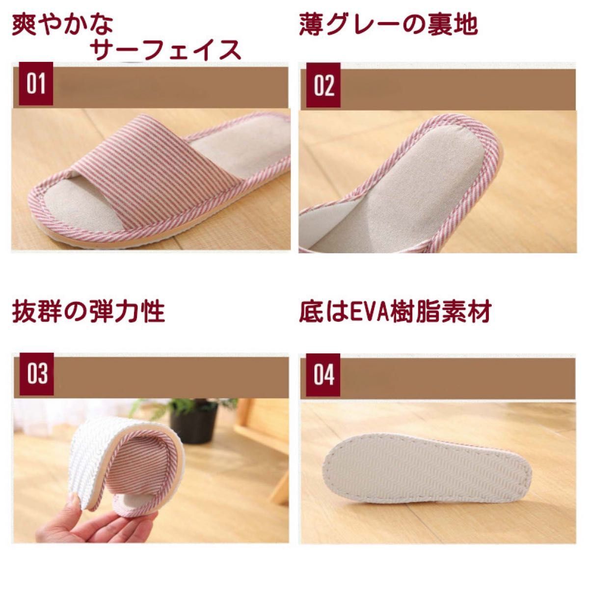 ルームシューズ ストライプ リネン 麻 スリッパ オールシーズン 通気性 抜群 さわやか シンプル