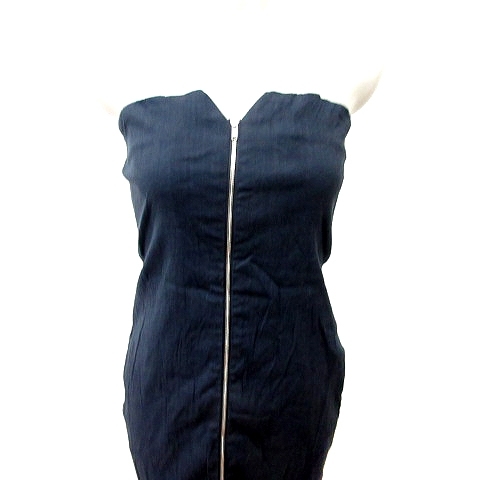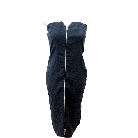 ミラオーウェン Mila Owen ベアワンピース タイト ひざ丈 麻 リネン 0 紺 ネイビー /RT レディース