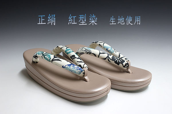正絹 紅型染生地の鼻緒はお洒落着物に合わせると最適です。