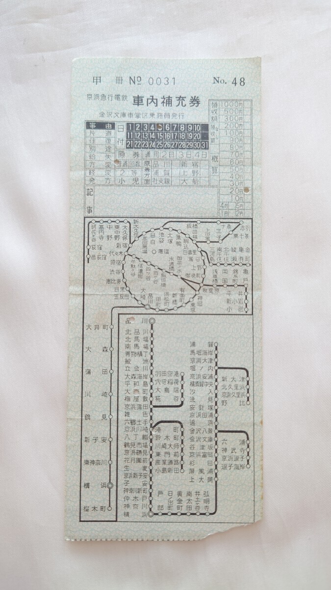 ▽京浜急行(京急)・金沢文庫車掌区発行▽車内補充券▽軟券乗車券
