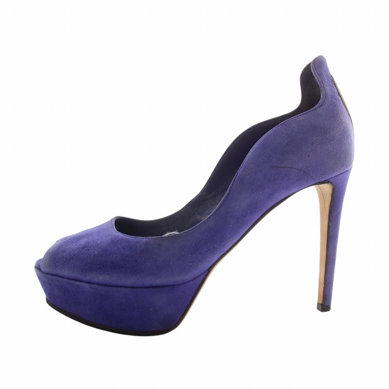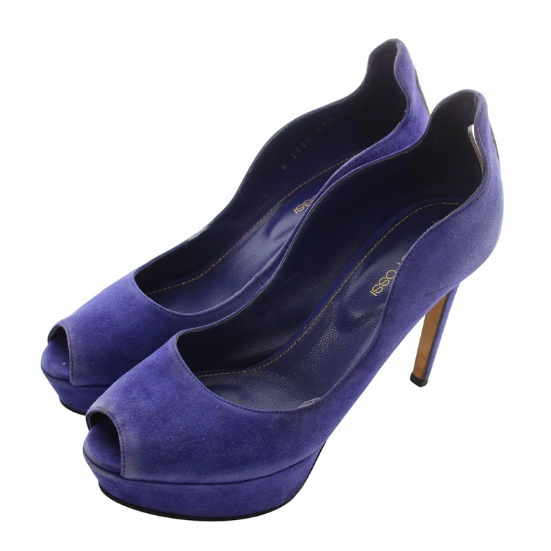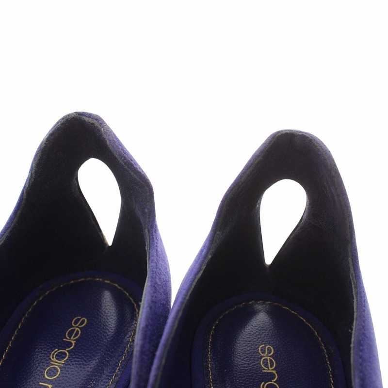 セルジオロッシ Sergio rossi パンプス スエード オープントゥ ハイヒール 37.5 24.5cm 紫 パープル /XZ ■GY11 レディース