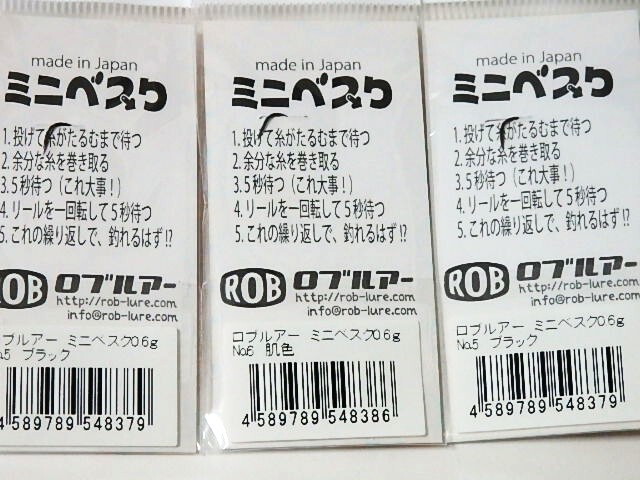 【メーカー等】:ロブルアー 【ウエイト】:0.6g 【カラー】: ・ブラック ・肌色 ・ブラック 【状態】:未開封品 ※カラー:数量については写真の通りとなっております。 | ||