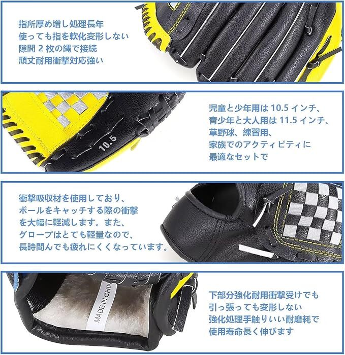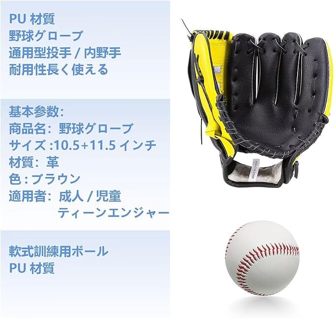 アメリカンカラー 仲良し親子セット 野球グローブ 軟式 キャッチボール 10.5+11.5インチ 練習用 初心者用 右投げ 左手着用