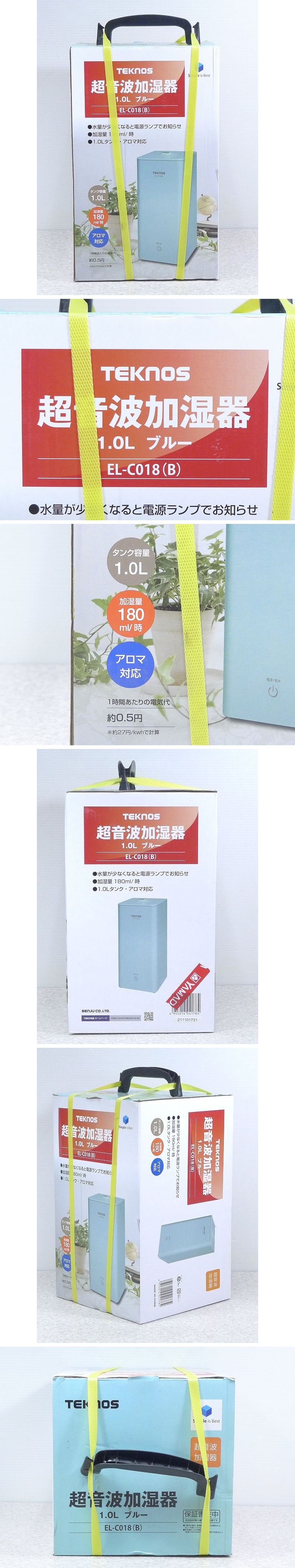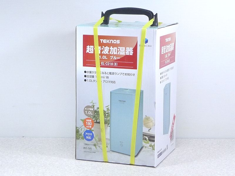 8024L02*6B▲【未使用】TEKNOS/テクノス 超音波加湿器 EL-C018(B) 1.0L ブルー アロマ 対応 加湿量:180m/時 加湿器 家庭用