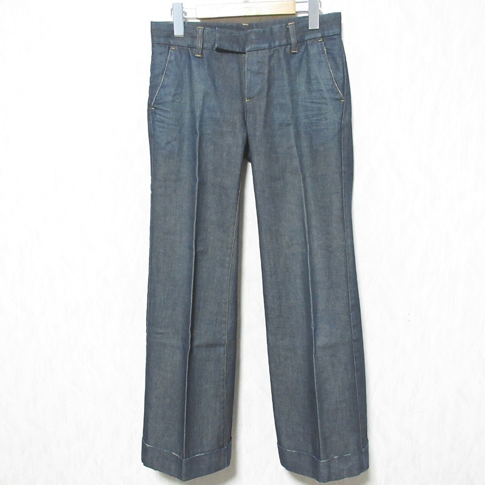 実寸サイズ:ウエスト77cm、股上21cm、股下75.5cm、ワタリ幅28cm、裾幅27.5cm
