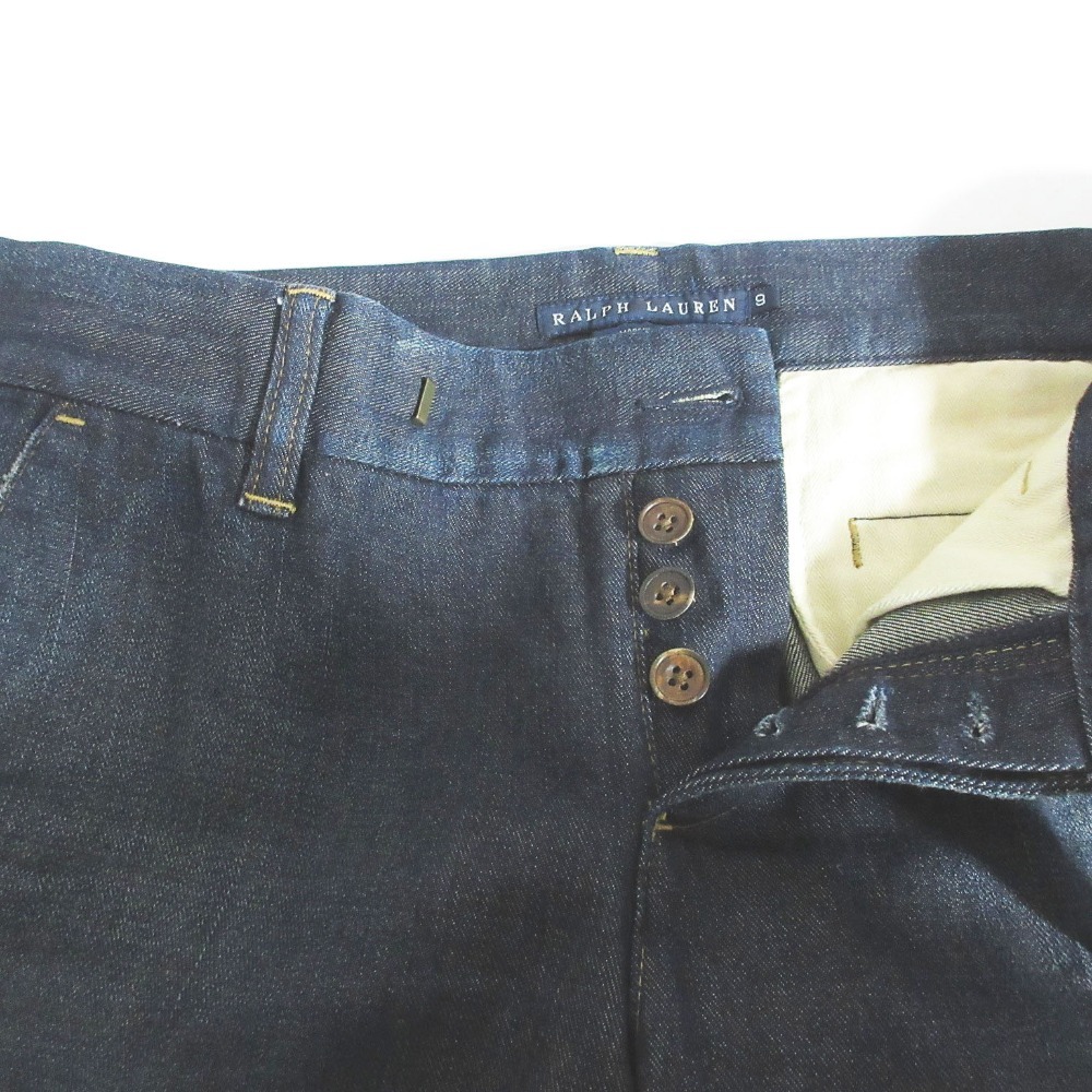 良品 RALPH LAUREN ラルフローレン 10014 ボタンフライ ワイド ストレート デニムパンツ ジーンズ 9 インディゴ