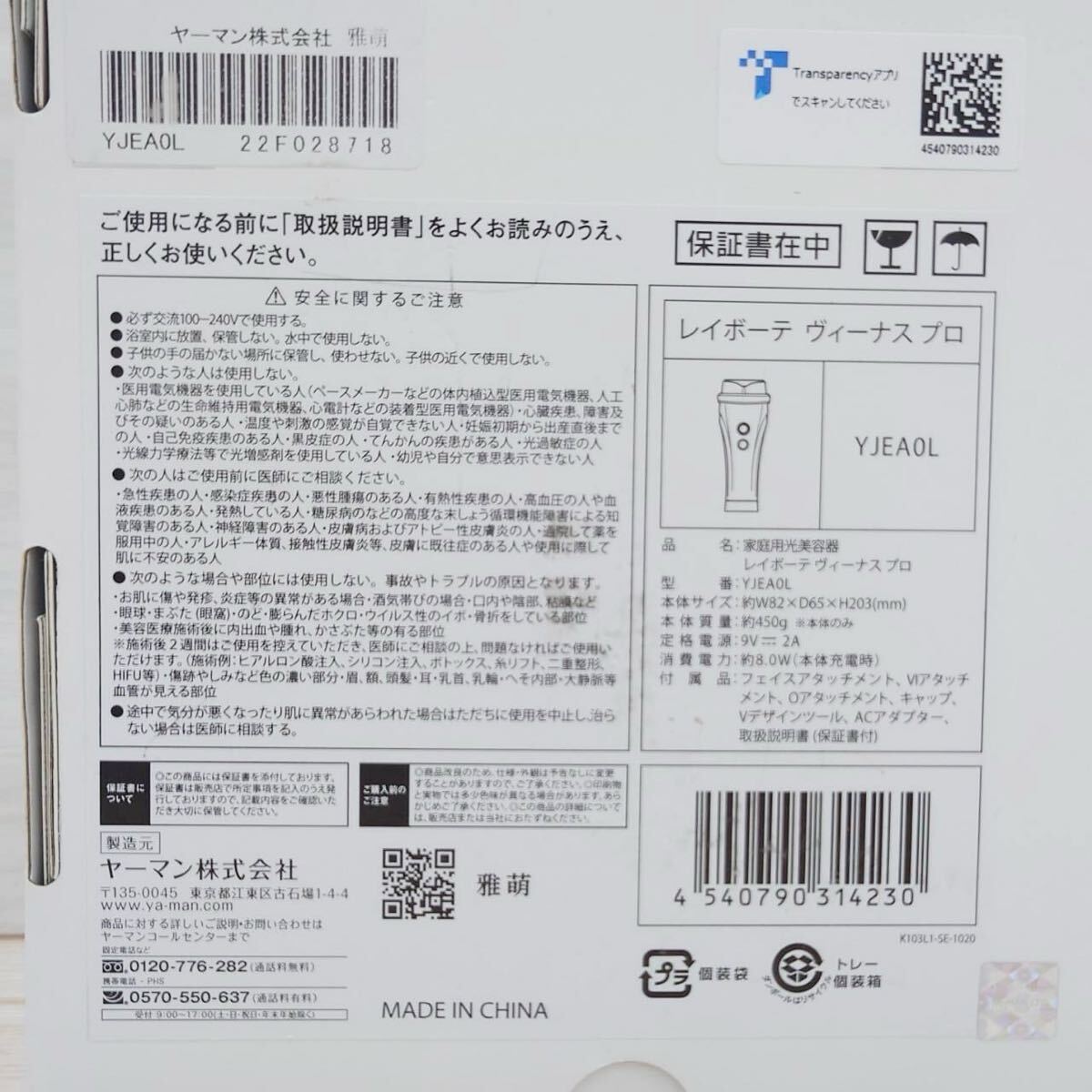 YA-MAN ヤーマン 家庭用光美容器 YJEA0L レイボーテ 脱毛
