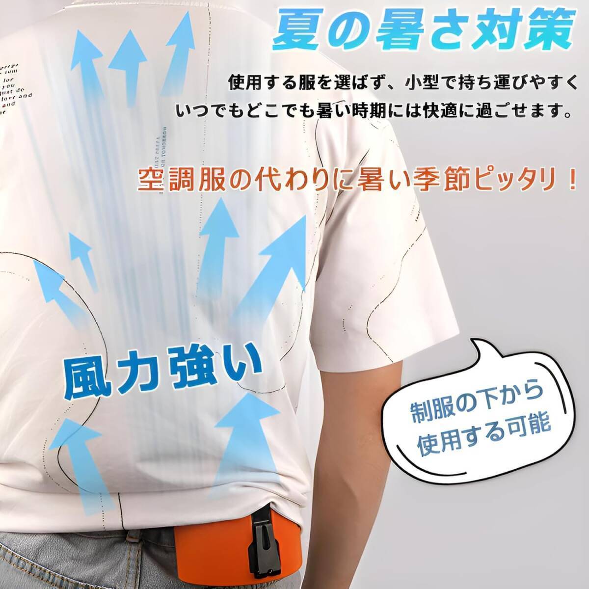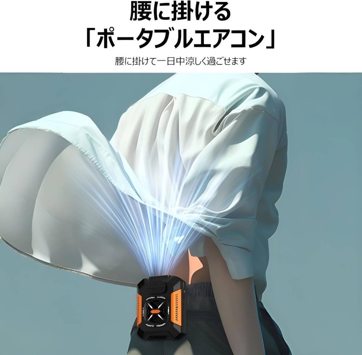 腰掛けファン:3秒全身冷却、体感温度を23°Cに下げられる。ベルトのようなスマートな腰掛け扇風機で、全身サラウンドで風を出して、40℃でも1分以内に体感温度を20℃下げるのを助けます。