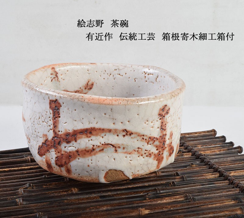 茶道具 絵志野 茶碗 有近作 伝統工芸 箱根寄木細工箱付 MGCN