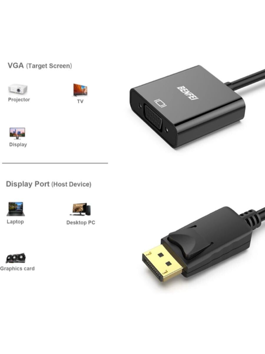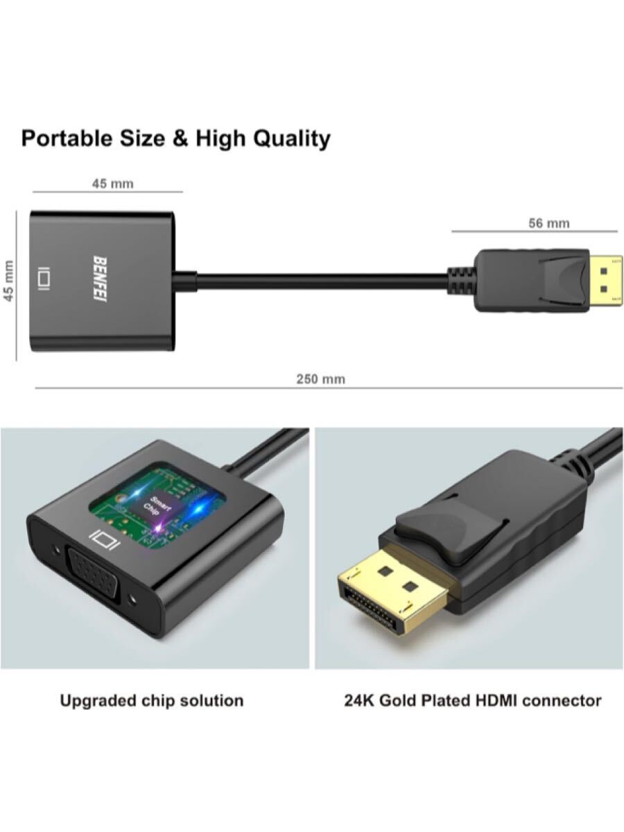 コンパクトデザイン-コンパクトデザインのポータブルBenfei DisplayPort-VGAアダプターは、DisplayPortポートを備えたコンピューター、デスクトップ、ラップトップ、またはその他のデバイスをモニター、プロジェクター、HDTV、またはVGAポートを備えたその他のデバイスに接続します。