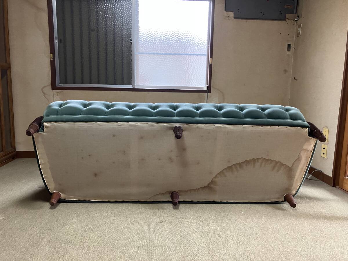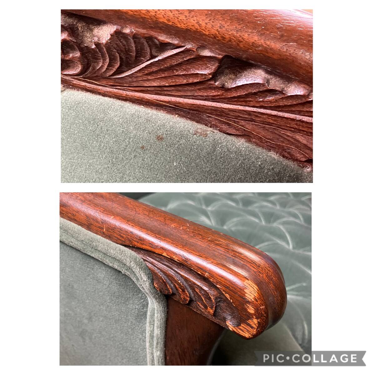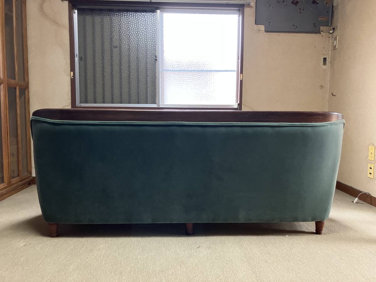 | マルニ木工 Maruni オールドマルニ 3人掛け ソファ アームチェア ベロア グリーン 鋲打ち 彫刻 高級 ヴィンテージ レトロ アンティーク調 |