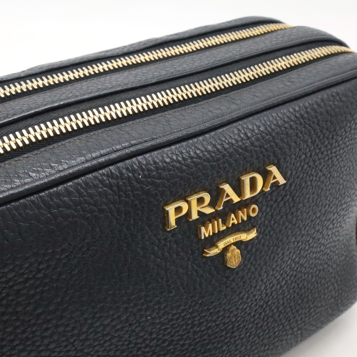 上質なレザーにゴールド金具のアクセントが効いたプラダらしい高級感のあるデザイン。