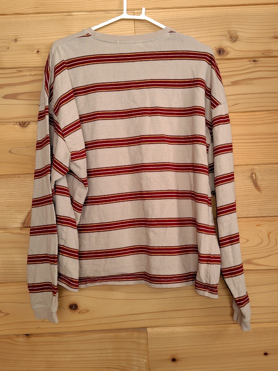 洗いざらしのような割としっかりした生地です。目立つ汚れなどはありませんが自宅で楽に洗濯したので、少し型くずれや毛玉が気になる方はご了承ください