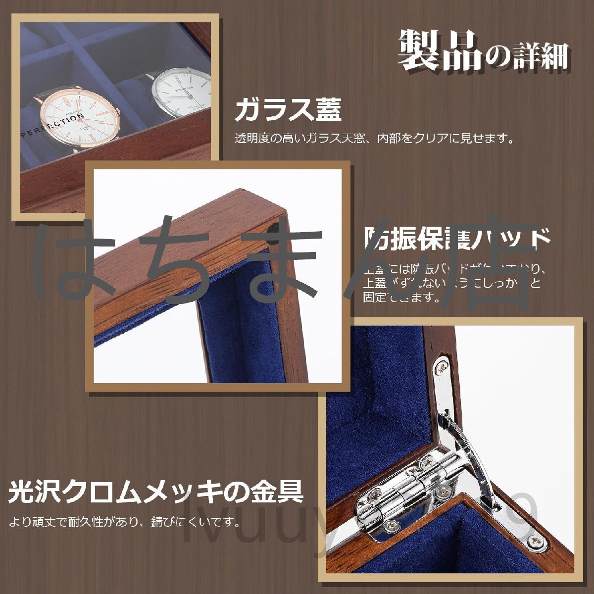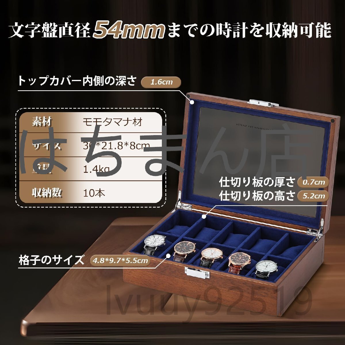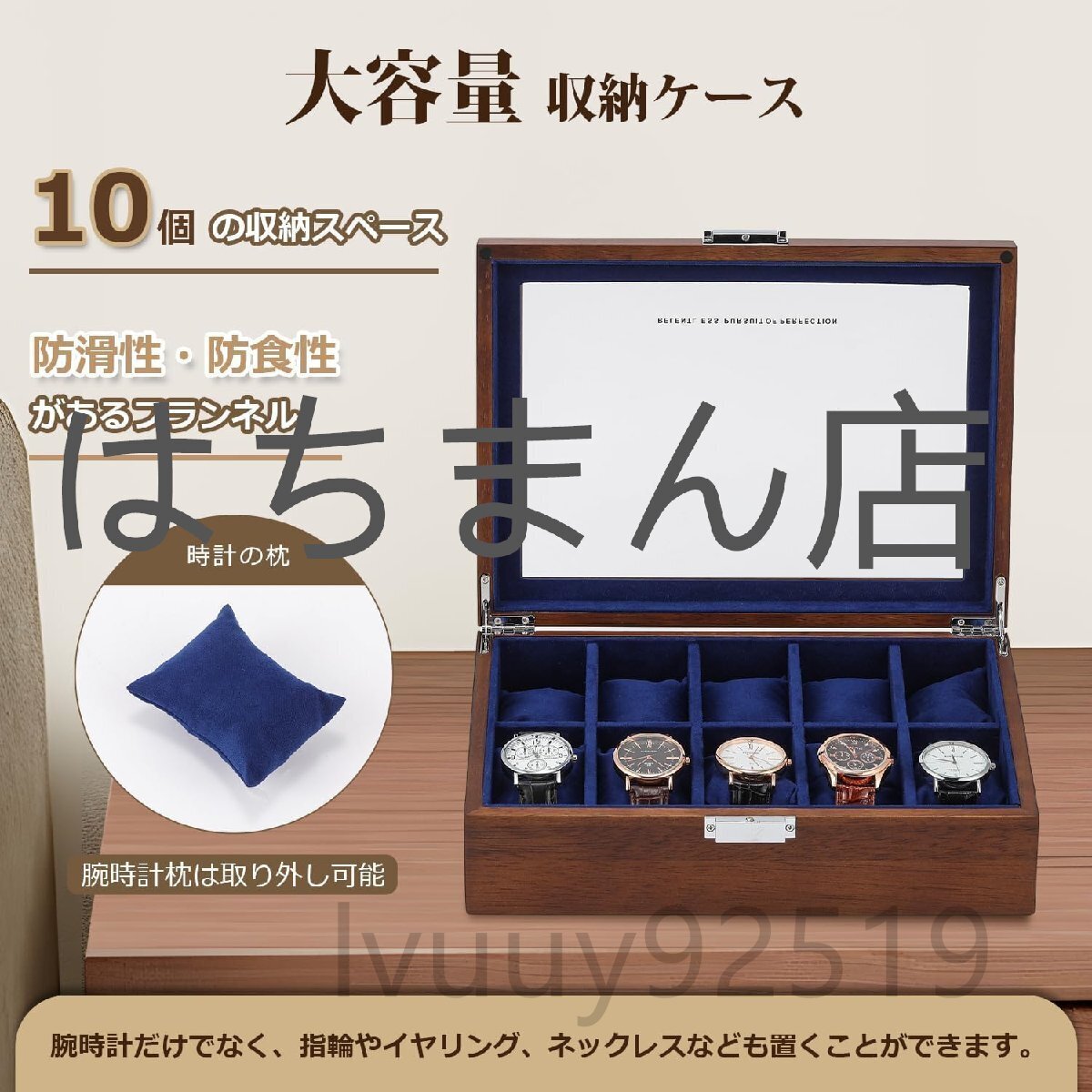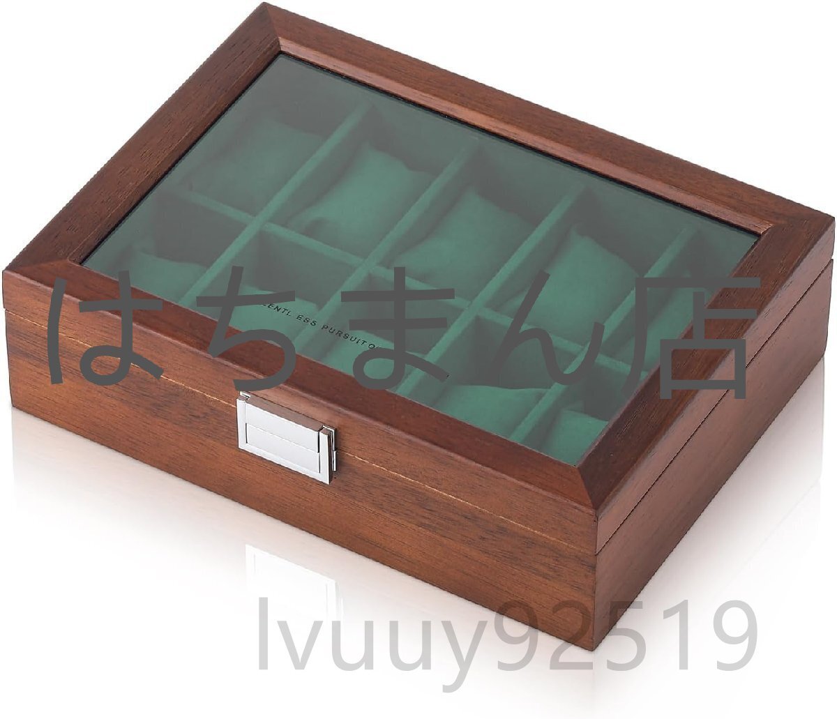腕時計収納ケース コレクションケース 腕時計 収納ボックス ウォッチケース 10本用 木製 ロック付き モモタマナ材 無垢材 (グリーン)