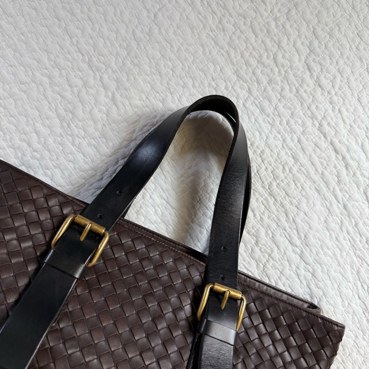 美品BOTTEGA VENETA ボッテガヴェネタ イントレチャート レザー トートバック ハンドバック 大容量 メンズ レディース A4収納可能 ブラウン