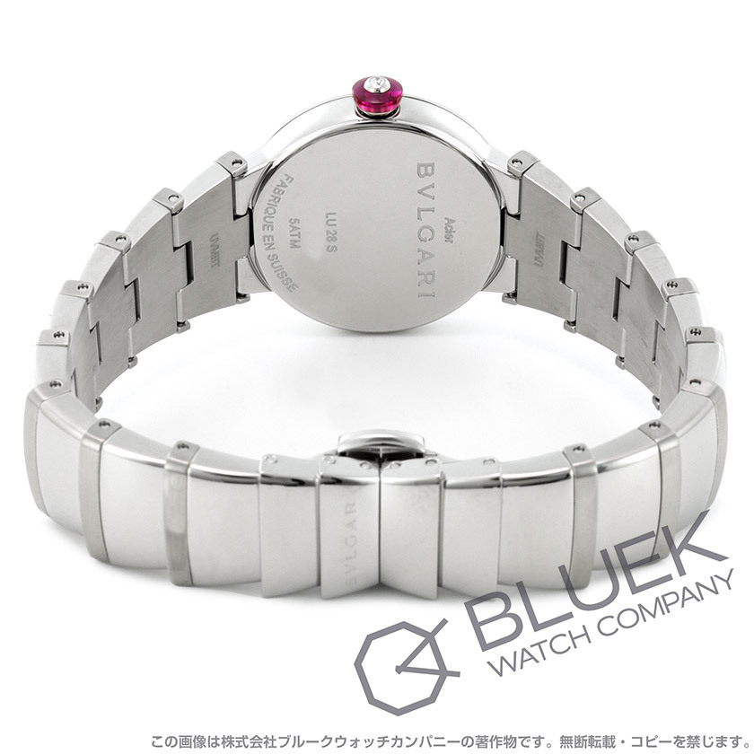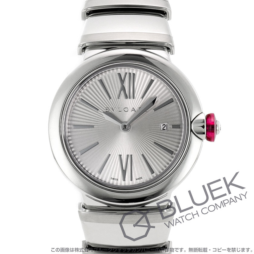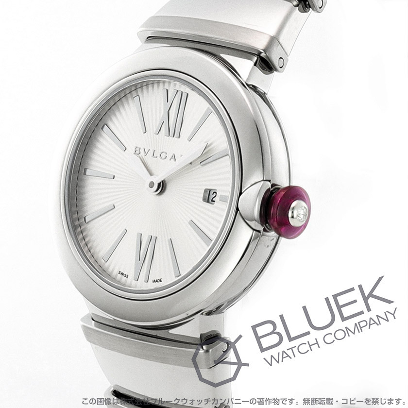 ローマの遺跡や歴史的建造物にインスピレーションを受けたデザインが特徴のブルガリ。中でもルチェアはイタリア語で「光」を意味する「ルーチェ」が名前の由来となっており、まるで光を注いだかのように美しく輝くケースが特徴です。こちらのモデルはブレスレットで蛇のとぐろを表現しており、ダイヤルには光輪のような放射状のギョーシェ彫りが施されております。また、リューズに装飾されたピンクストーンにはダイヤモンドが1粒セットされ、アクセントになっております。颯爽と今を生きる女性にふさわしい、洗練された一本です。 |