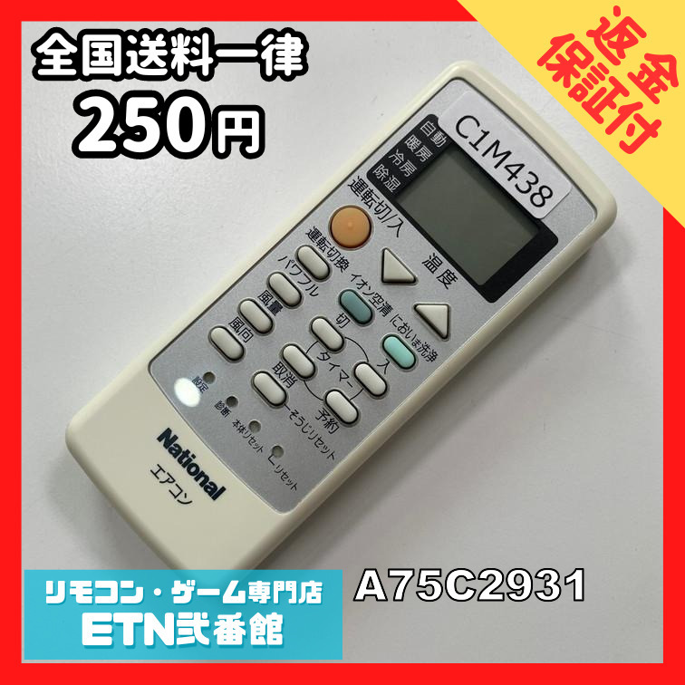 C1M438【送料250円】エアコン リモコン / National ナショナル A75C2931 動作確認済み★即発送★ * 冷房 暖房