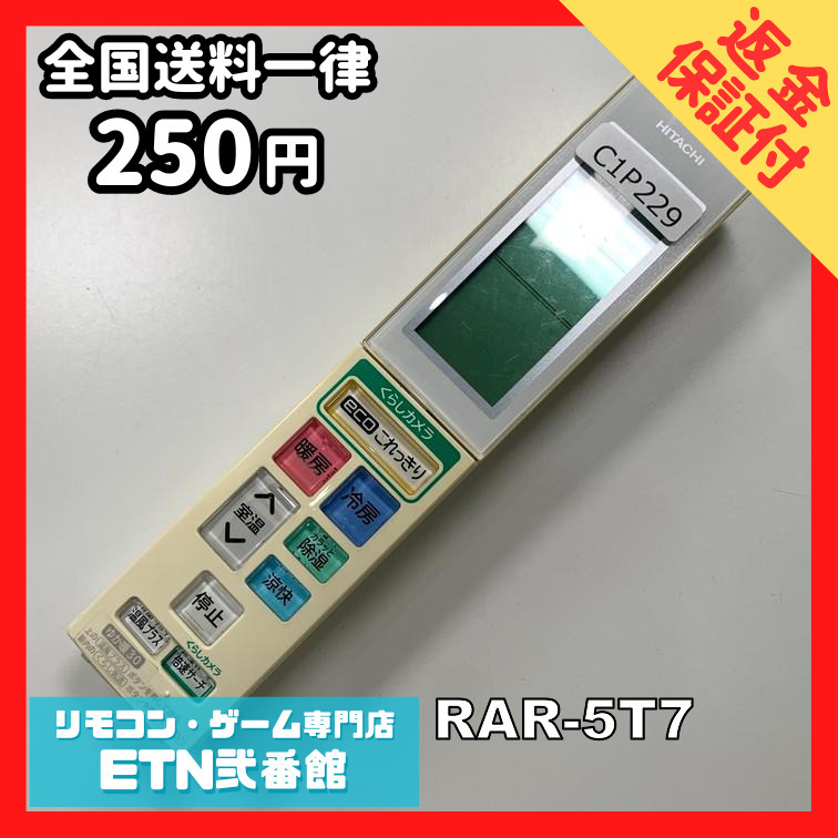 C1P229 【送料250円】エアコン リモコン / 日立 ヒタチ HITACHI RAR-5T7 動作確認済み★即発送★ * 冷房 暖房