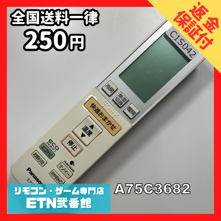 C1S042 【送料250円】エアコン リモコン / Panasonic パナソニック A75C3682 動作確認済み★即発送★ 冷房 暖房